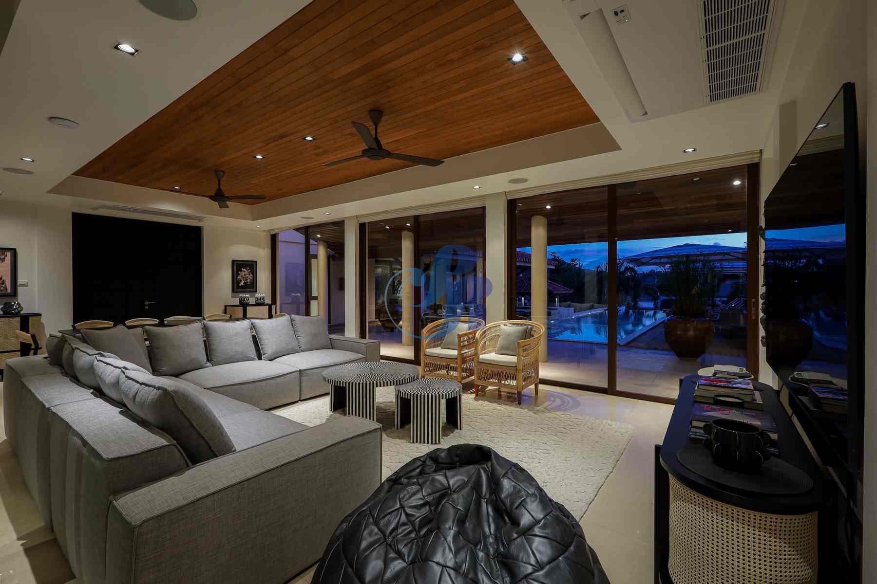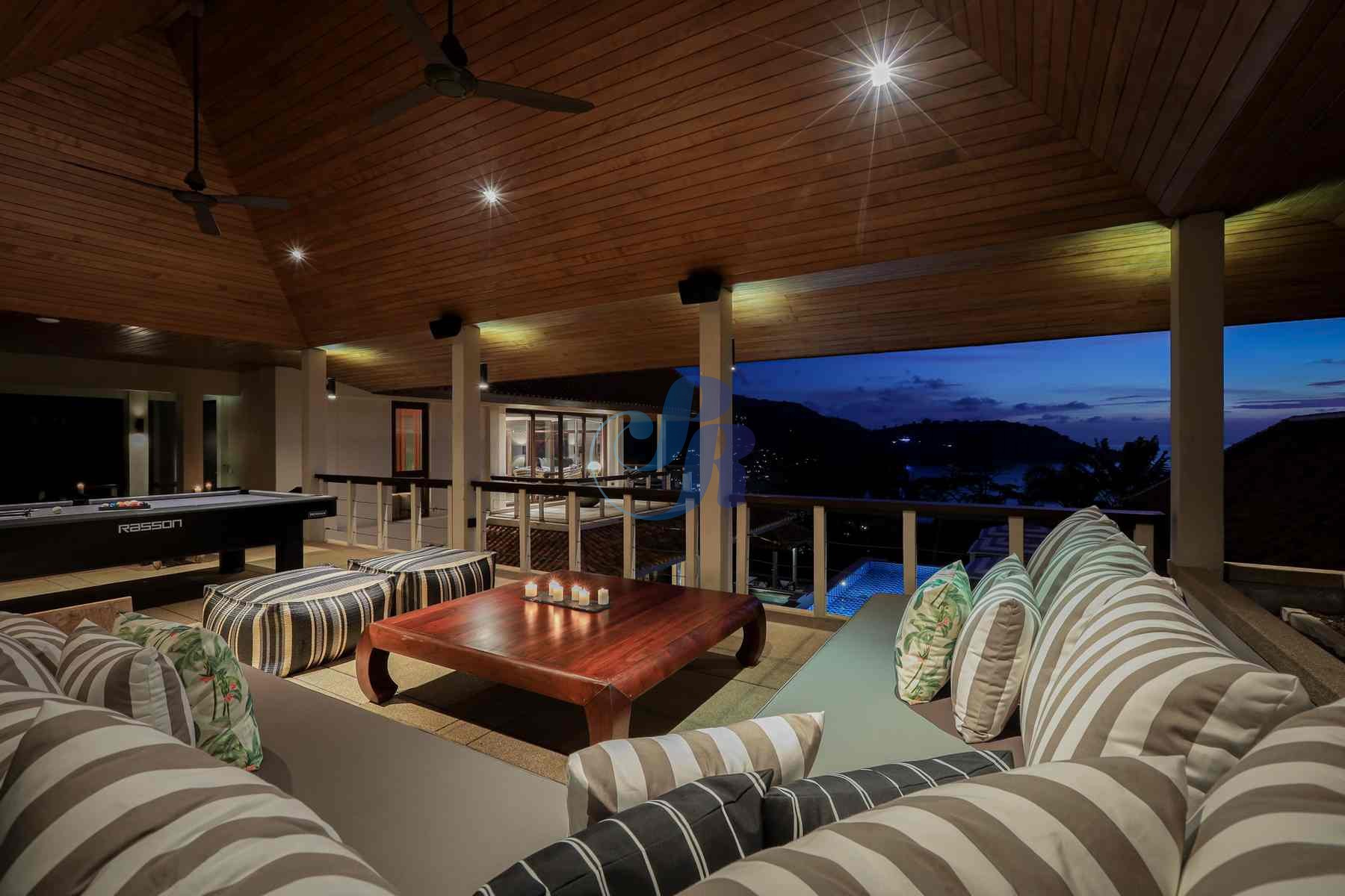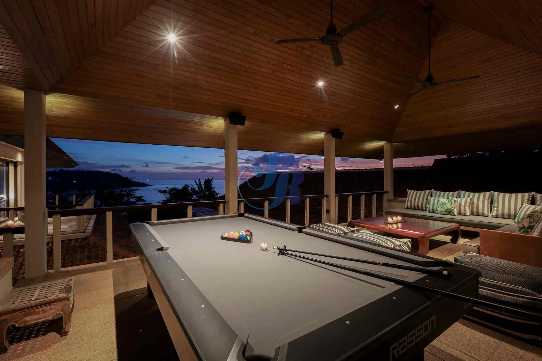 Head upstairs to the entertainment level, where a lounge area and pool table invite relaxed evenings with family and friends while the sky glows over the Andaman Sea.