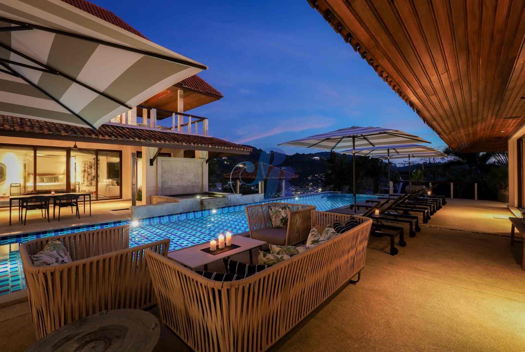 Villa Allegra features five bright bedrooms, each with its own en-suite bathroom, giving every guest a private sanctuary. The open-plan living room flows onto the pool deck, where sweeping sea views over Kata Noi Beach set the scene for leisurely breakfasts or spectacular sunset cocktails.