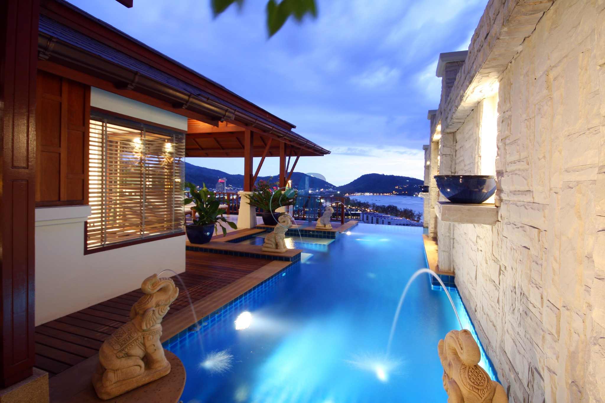Emanating an air of sophistication, the upper living level is adorned with subtle jade accents and adorned with intricate Asian artwork, creating an ambiance of refined elegance. As if designed to blend seamlessly with the beauty of nature, the concertina doors gracefully unfurl, unveiling an expansive terrace that extends to a private plunge pool. With the added indulgence of massaging bubble jet beds, the terrace becomes a sanctuary of relaxation and rejuvenation.
