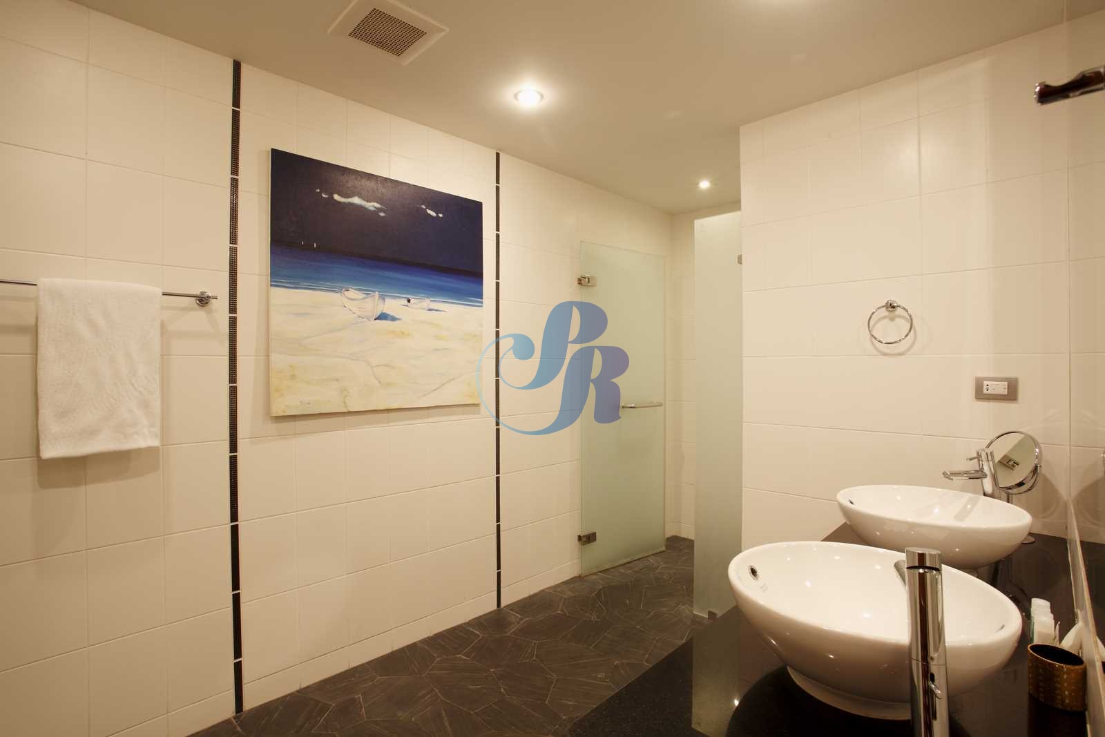 Retreat to the lower level, where the sleeping quarters await, promising a restful haven after days of exploration. Here, two opulent master suites beckon, each adorned with a lavish king-size bed and featuring en-suite bathrooms that epitomize luxury with their whirlpool tubs. Sharing a balcony that frames mesmerizing sea views, these suites offer a symphony of tranquility. Not to be outdone, the second master suite boasts an additional private terrace, ensuring moments of solitude amidst nature's beauty.