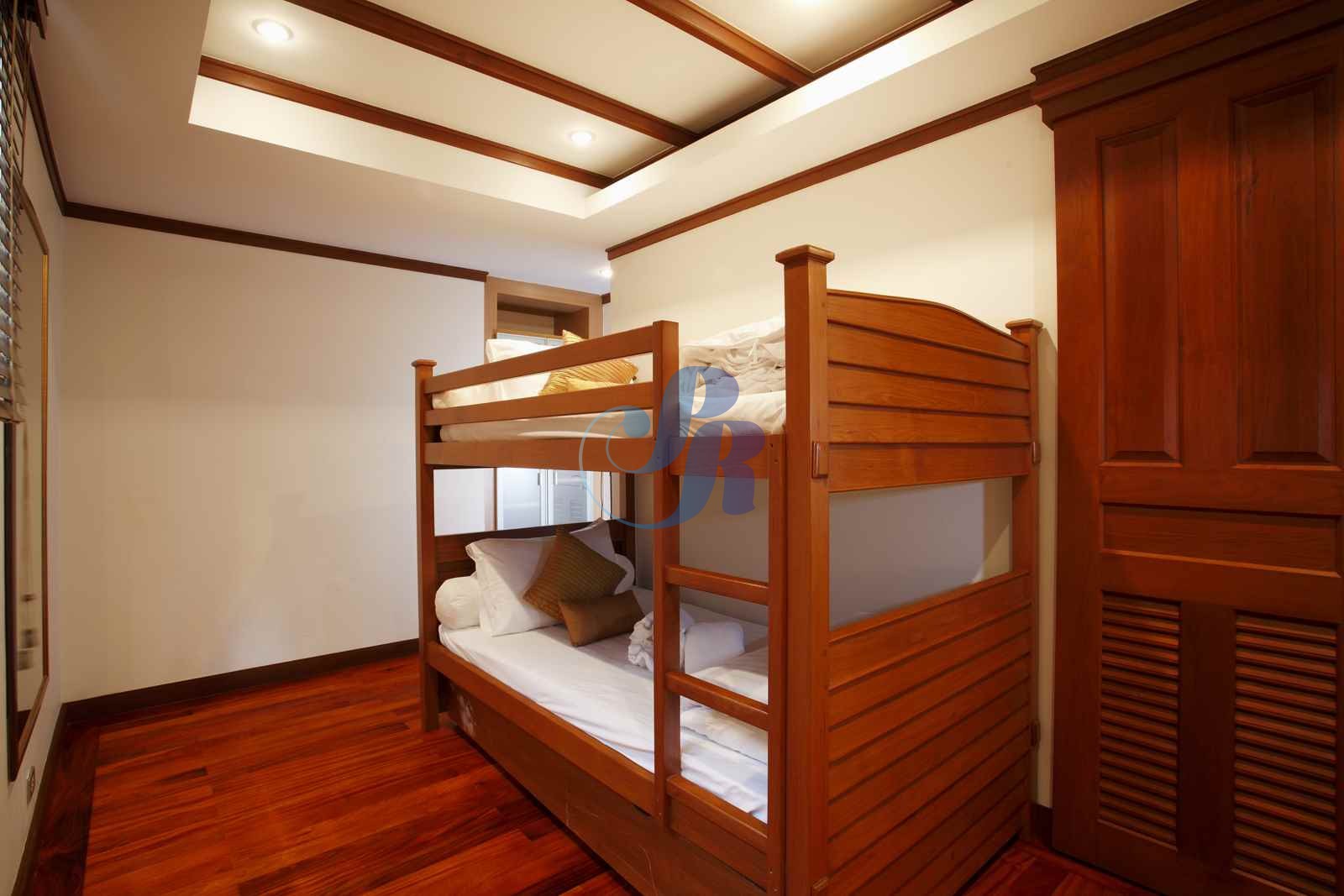 The villa's charm continues with the remaining bedrooms: a third bedroom furnished with twin beds and a fourth bedroom playfully outfitted with bunk beds. Each room enjoys the privilege of a private bathroom, complete with modern shower facilities, adding convenience to the lap of luxury.