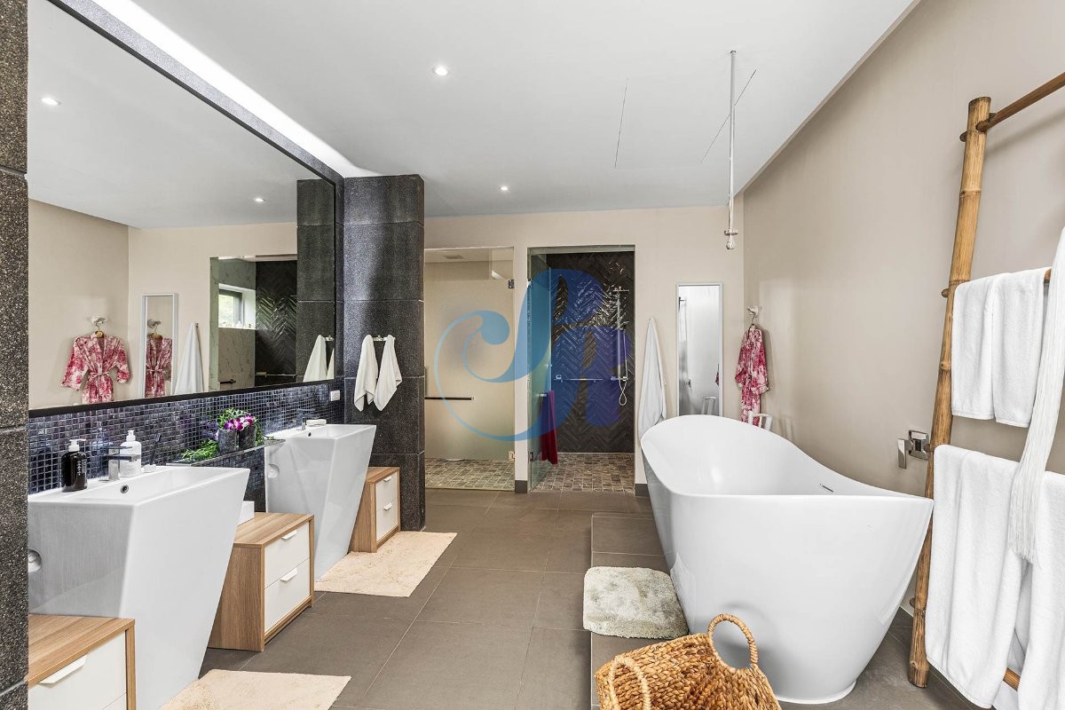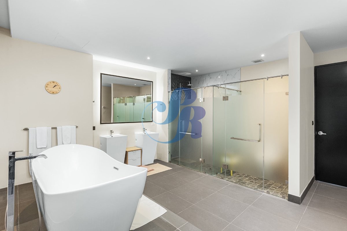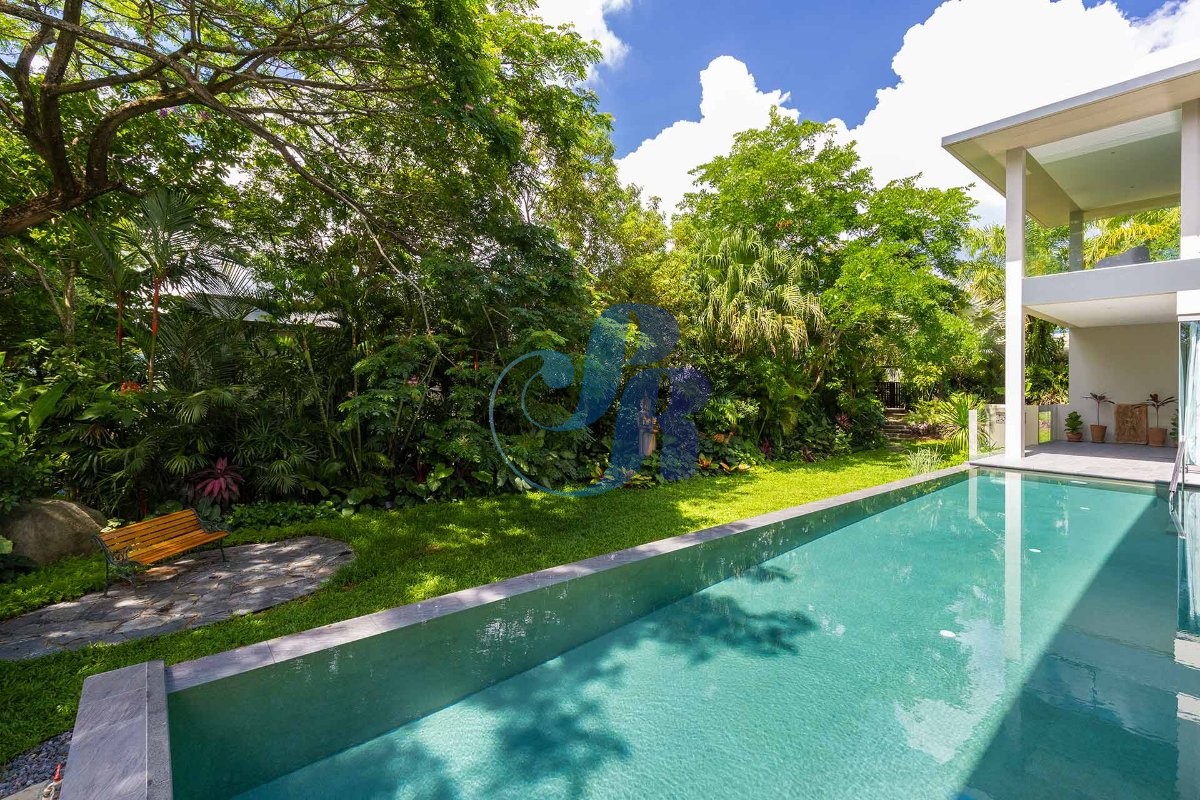 Following a meticulous two-year renovation, Villa Mimosa has been reimagined for modern tropical living. The upper level features a spacious master suite with private veranda, mountain views, and a spa-style bathroom with soaking tub, rain shower, and dual vanities. A flexible studio-bedroom with a walk-in wardrobe and workspace adjoins the master, while a third room serves as a media lounge or library. A Schindler lift connects both floors for full accessibility.