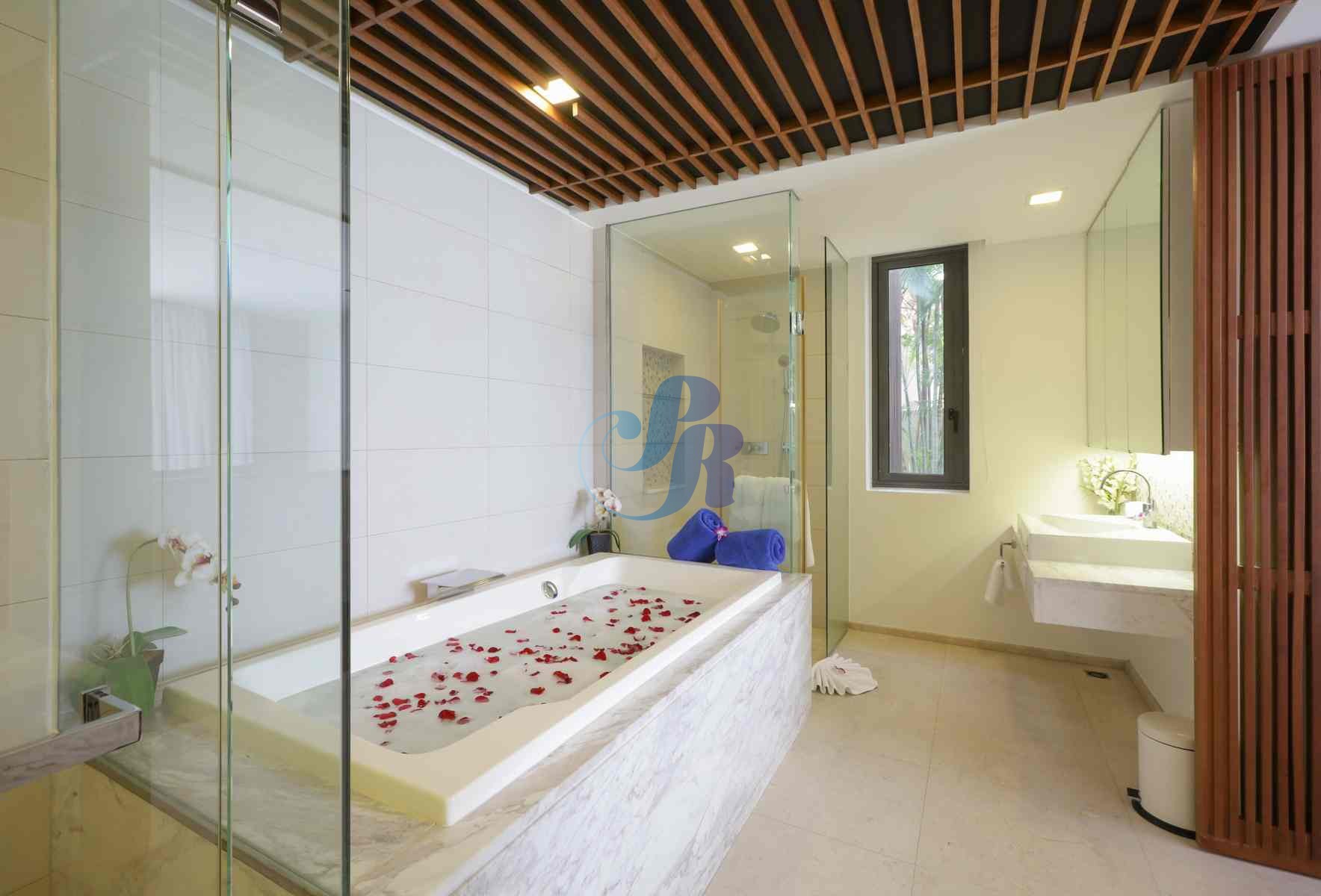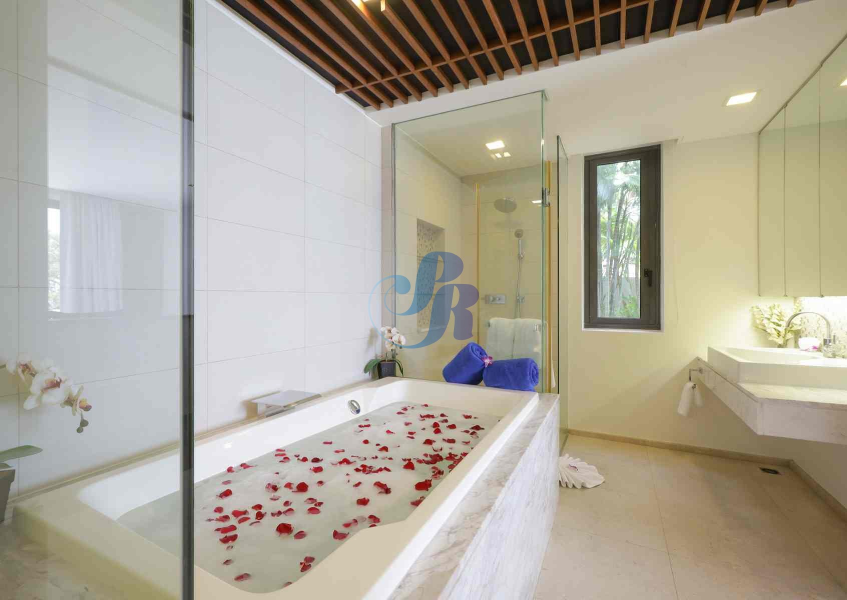 En-suite bathroom with a bathtub overlooking the sea, offering a unique luxury experience