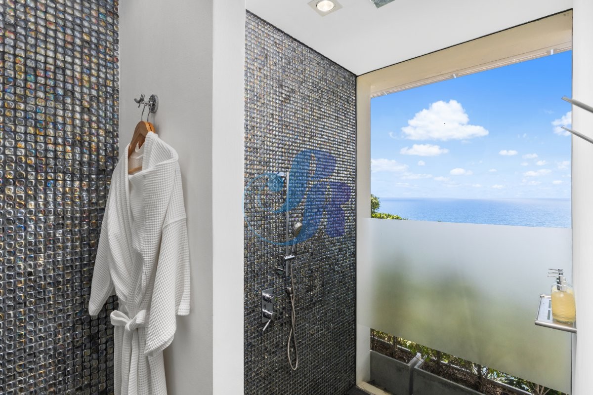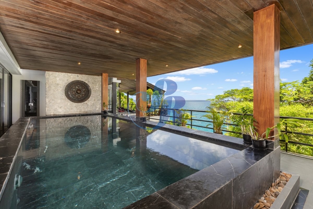 Thoughtfully aligned along cascading tropical gardens, the estate flows from the cliff-top main villa to the lower villa near the ocean — a design that reflects feng shui balance and an intimate connection with nature. Materials including marble, glass, teak, and stone deliver a contemporary yet soulful living environment.