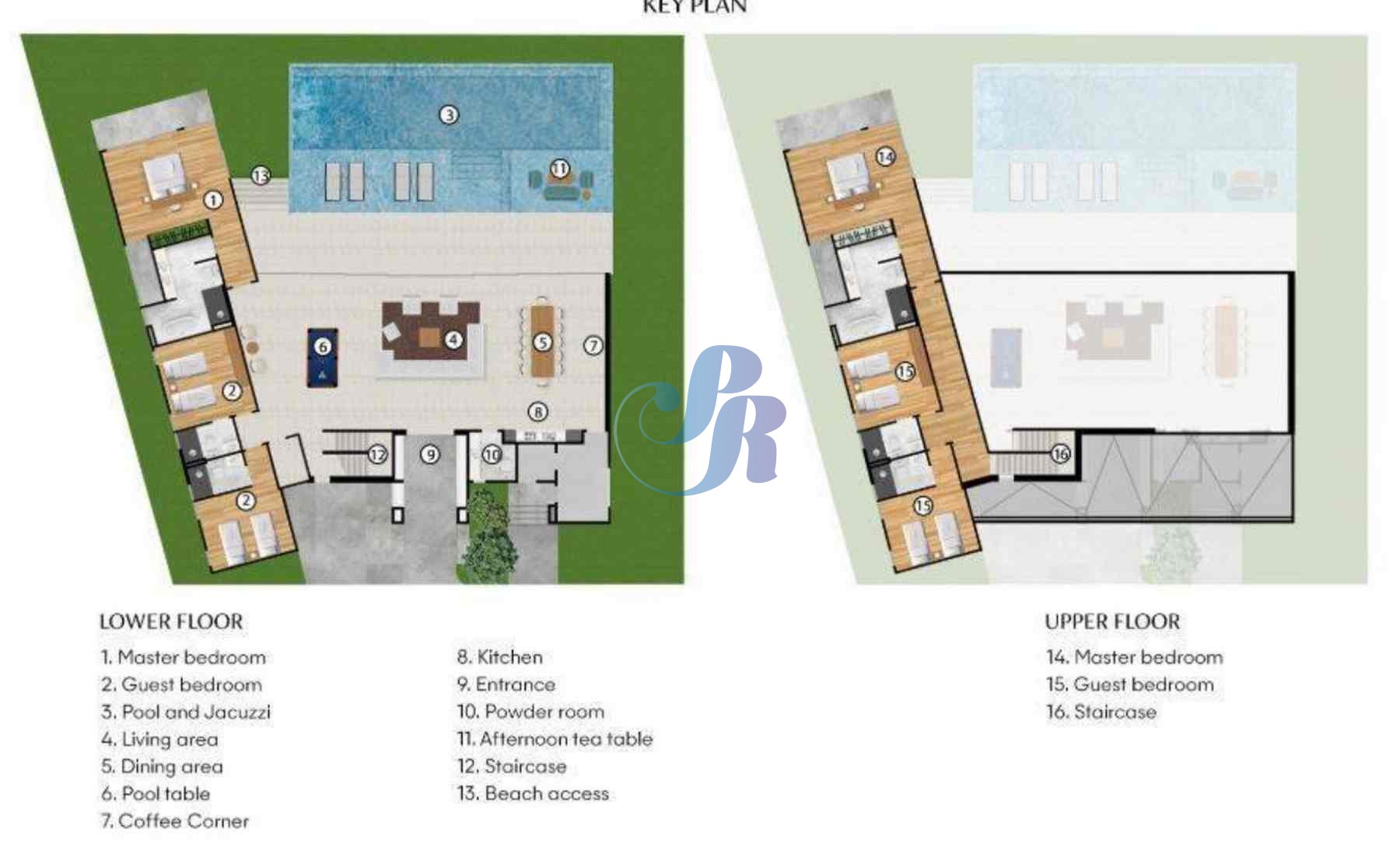 The outdoor spaces are designed for both relaxation and entertainment. Lounge by the 16.45-metre infinity pool, unwind on sunbeds under umbrellas, or step directly from the garden onto the beach. Guests can enjoy kayaking, paddle boarding, snorkelling, or simply soaking up the tropical atmosphere.