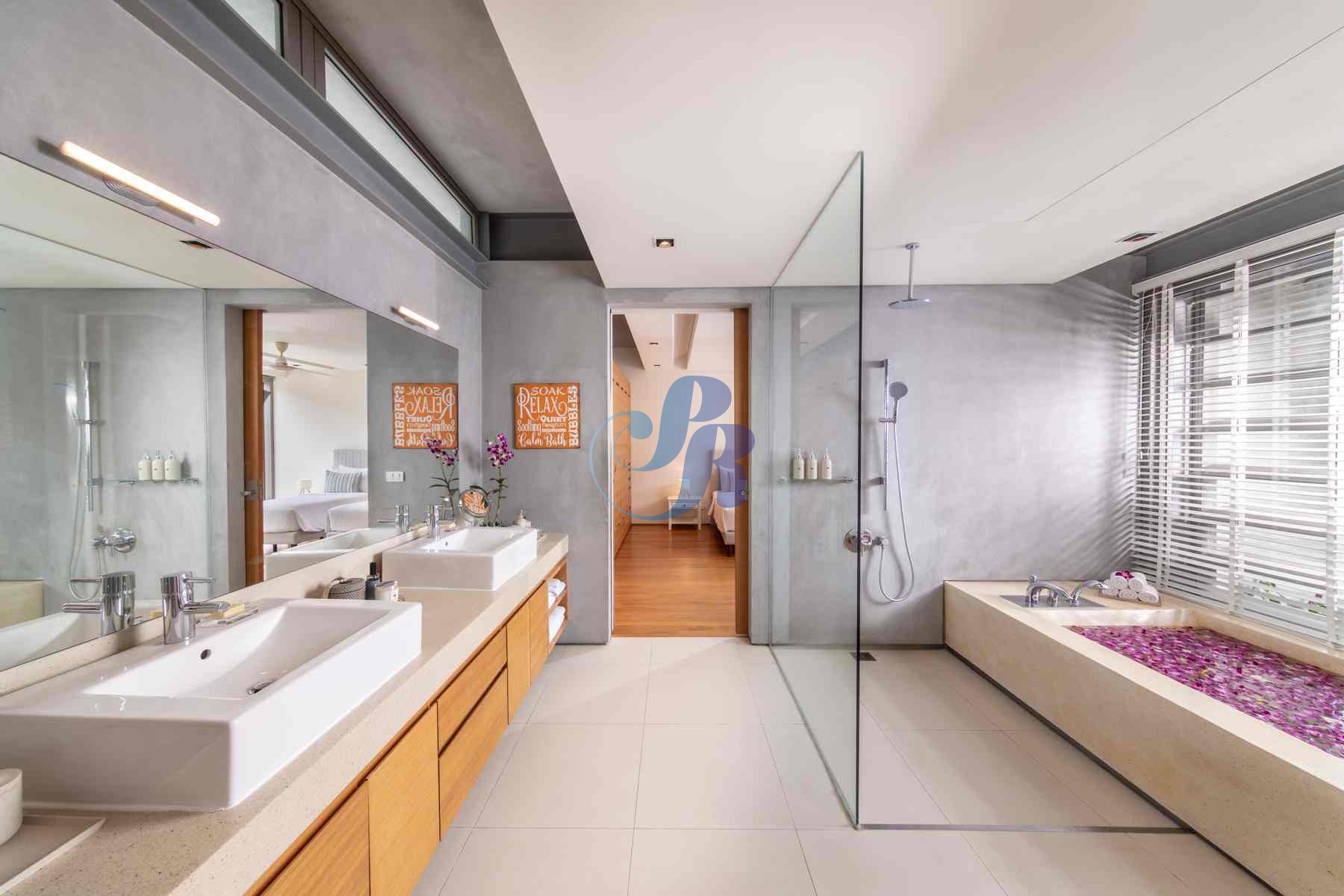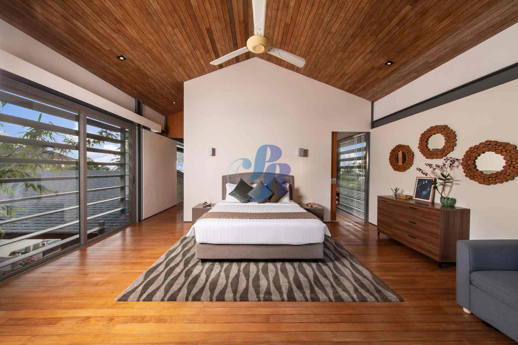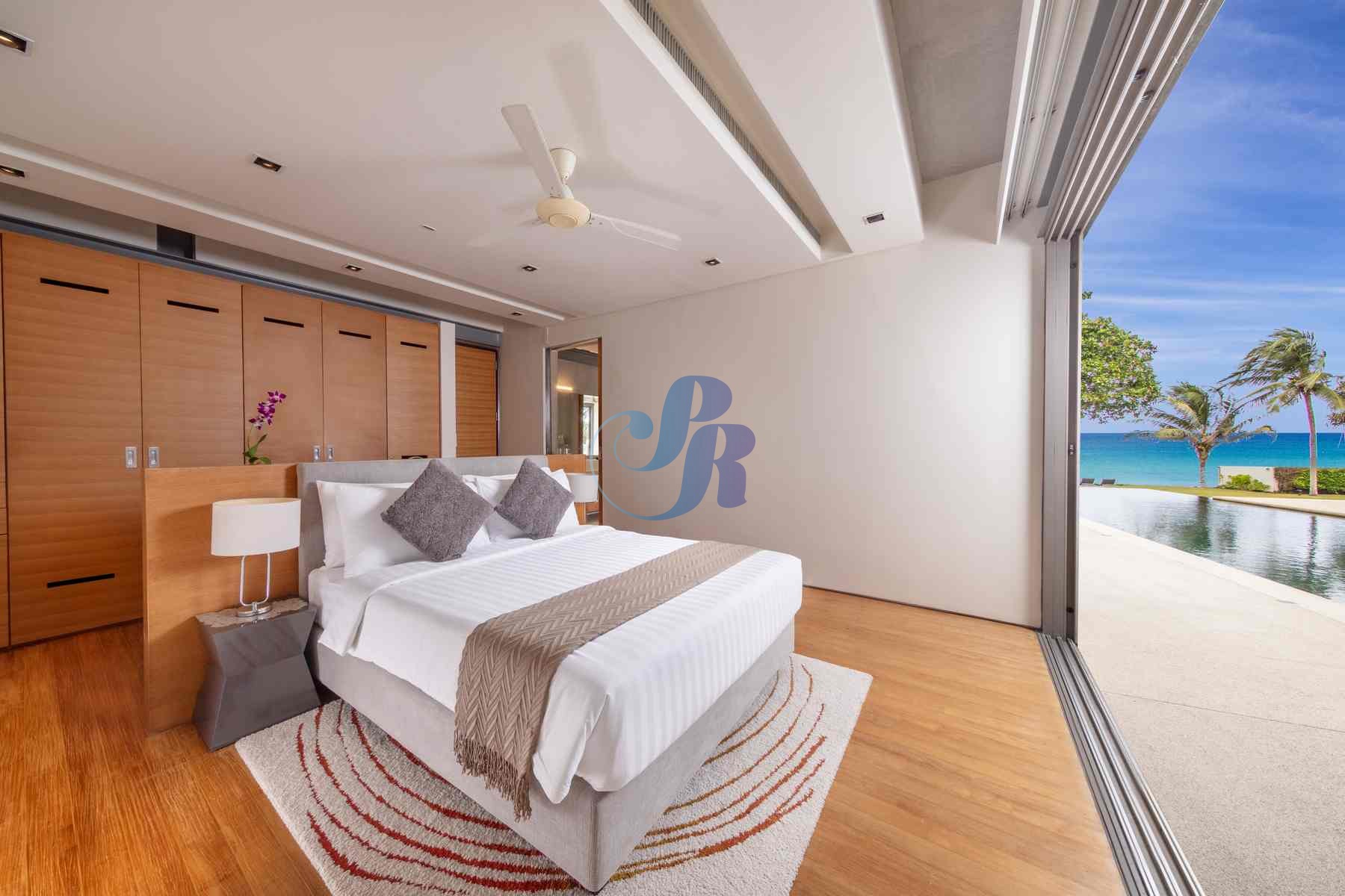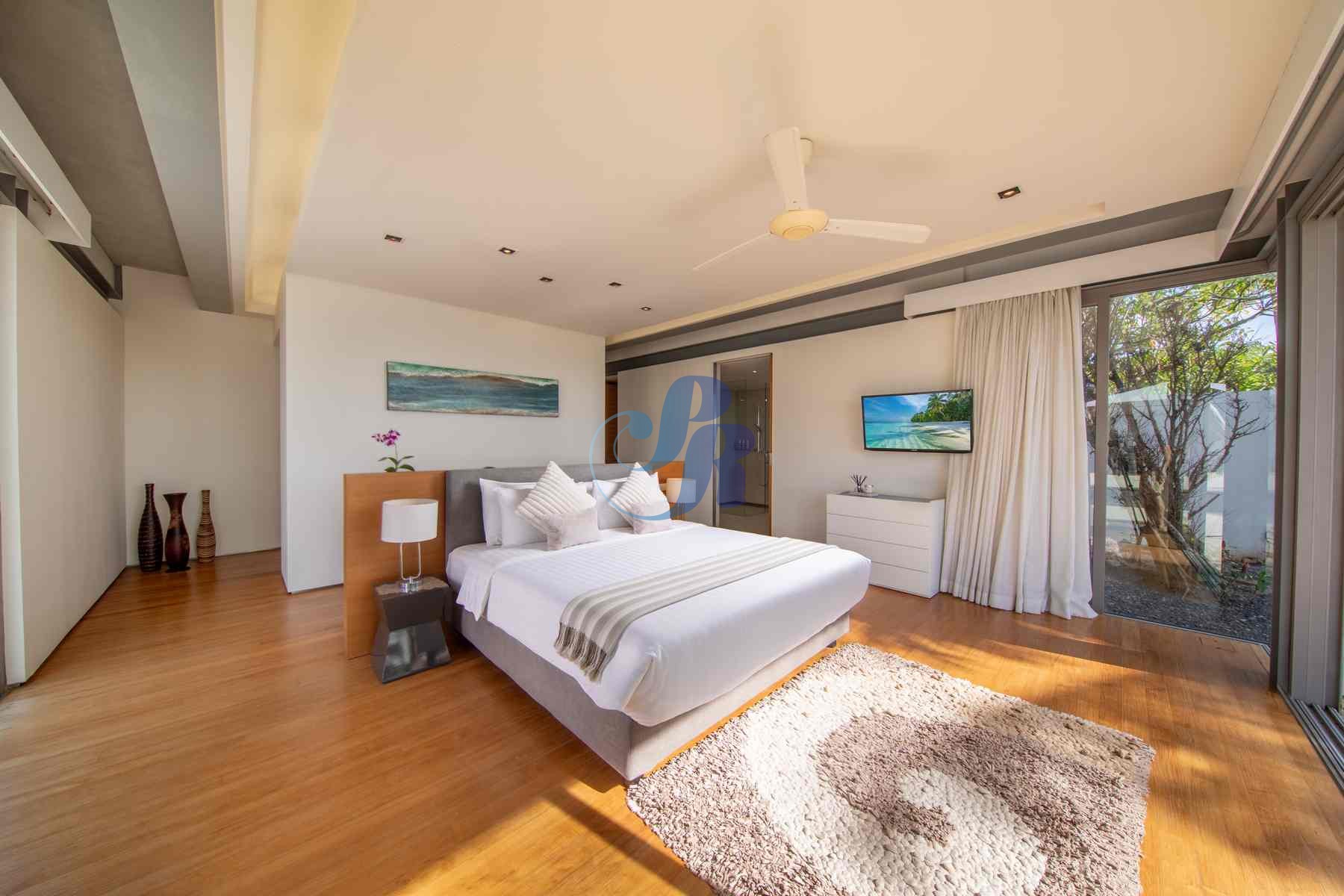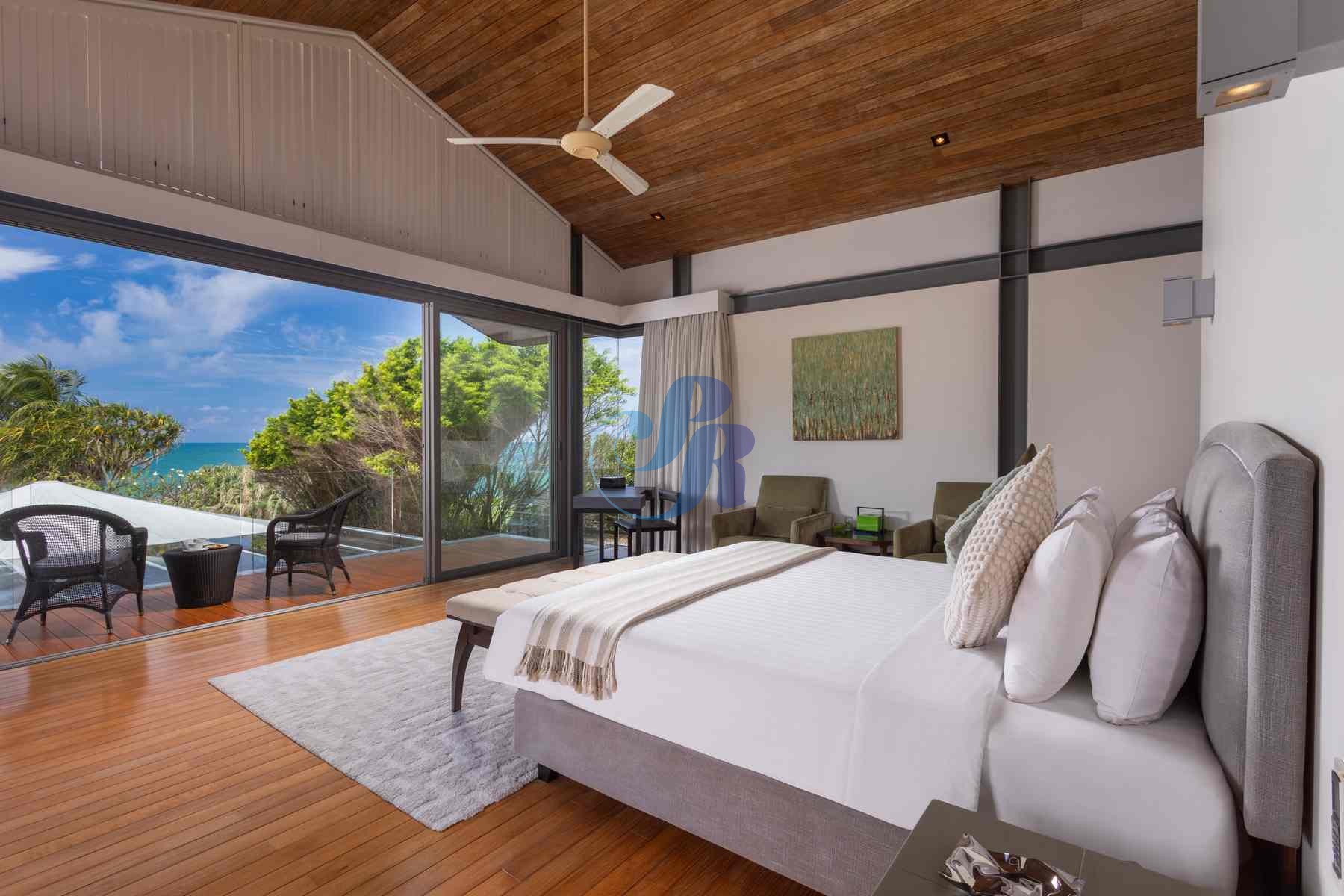 Accommodating up to 12 adults, the villa features two lavish master suites and four beautifully appointed guest bedrooms, all styled in calming, understated elegance.