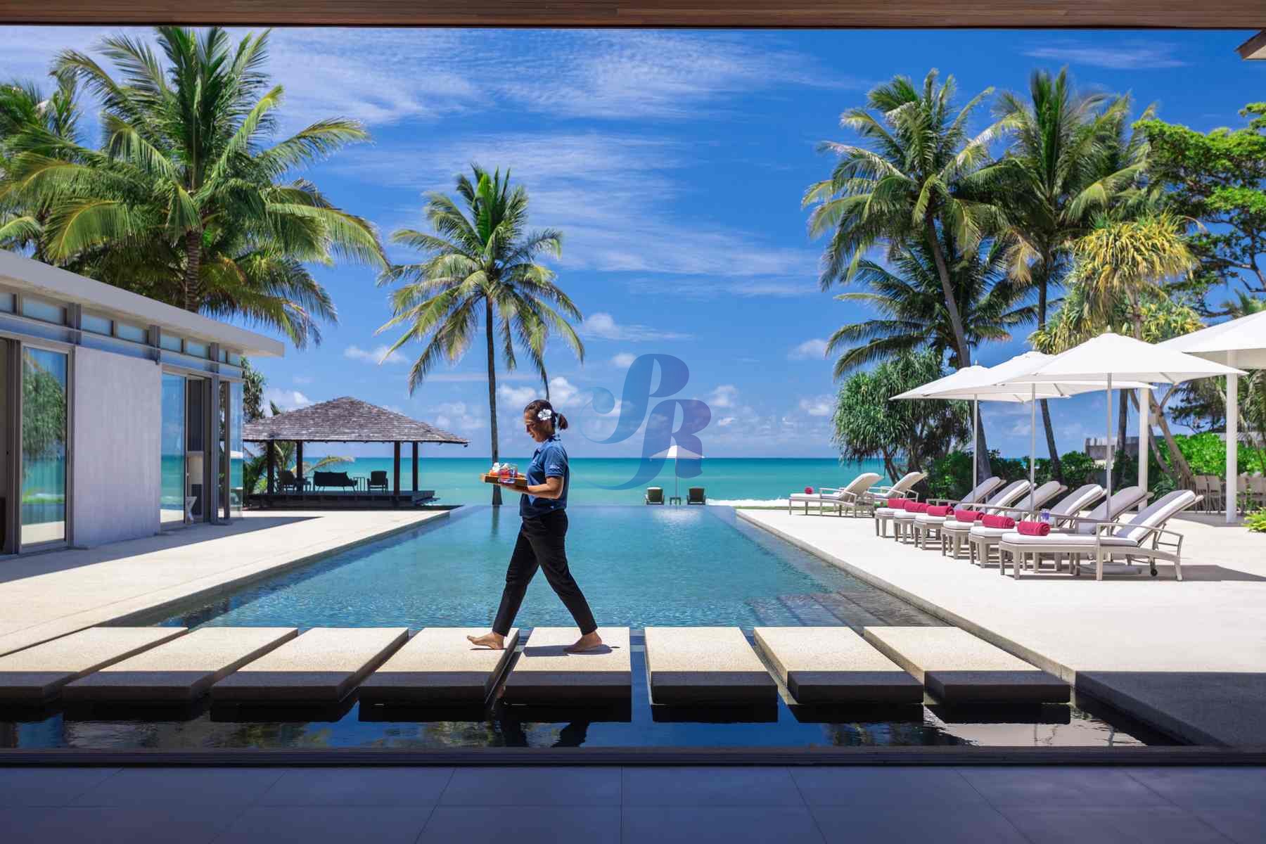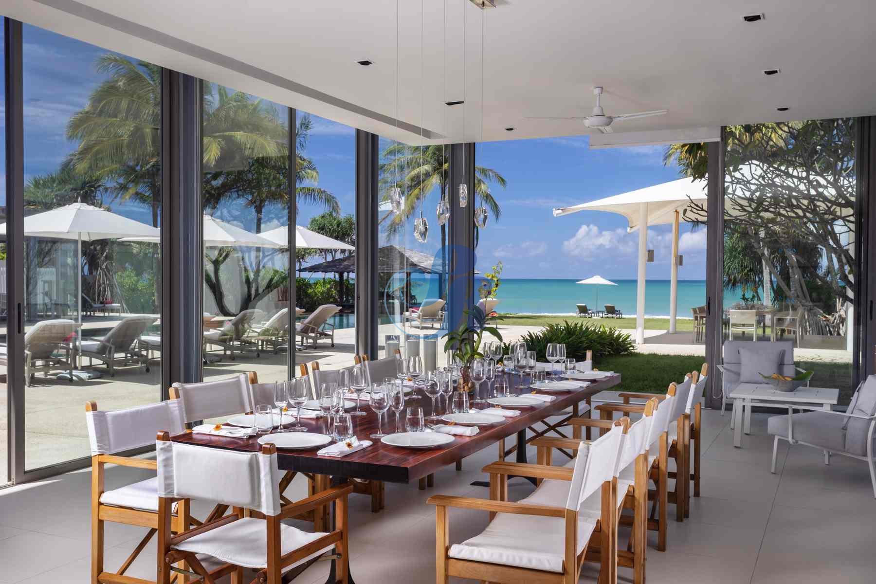 Guests can enjoy both indoor and alfresco dining, enhanced by the services of a private chef preparing exceptional Thai and international cuisine using fresh local ingredients. Each of the six beautifully appointed bedrooms offers plush bedding, premium linens, and a soothing contemporary ambiance, complemented by high-speed Wi-Fi, Smart TVs, and full air conditioning throughout.