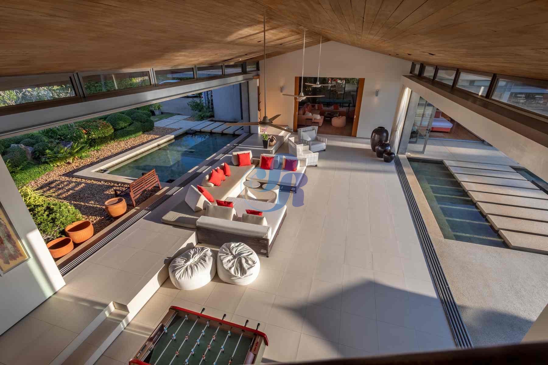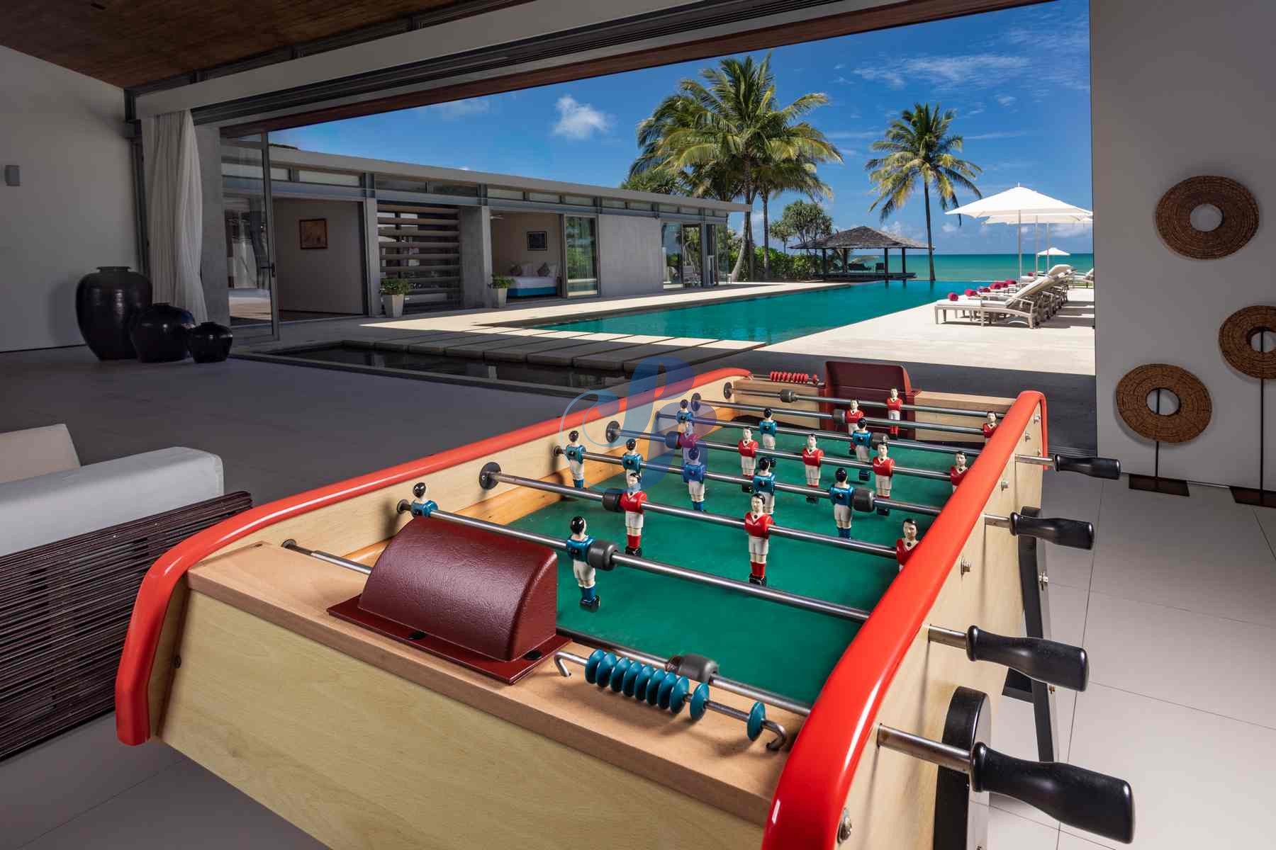 Leisure and entertainment are thoughtfully integrated into every stay. A family media room with Smart TV provides a cozy setting for movie nights, while the spacious lawn invites children to play freely. Table tennis, foosball, direct beach access, complimentary kayaks, and stand-up paddleboards add even more ways to unwind and explore.