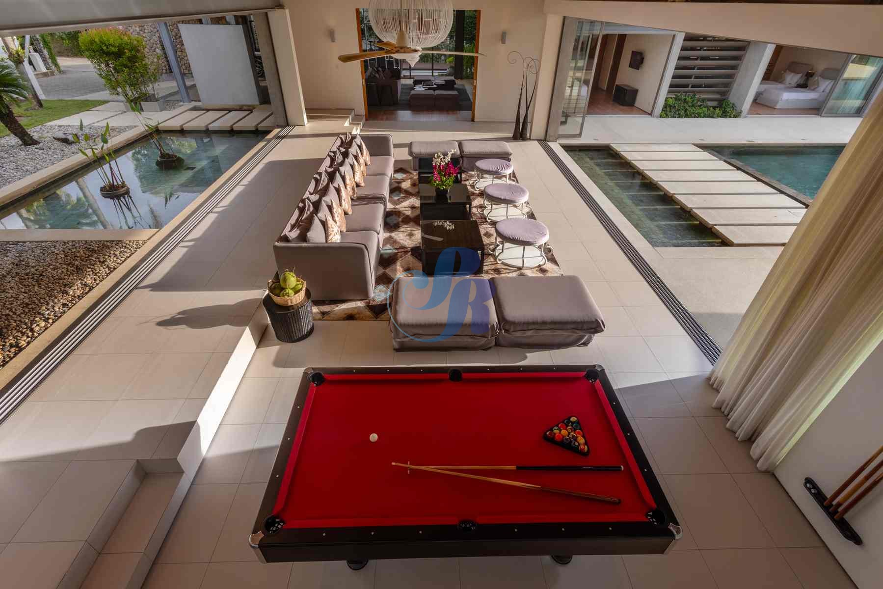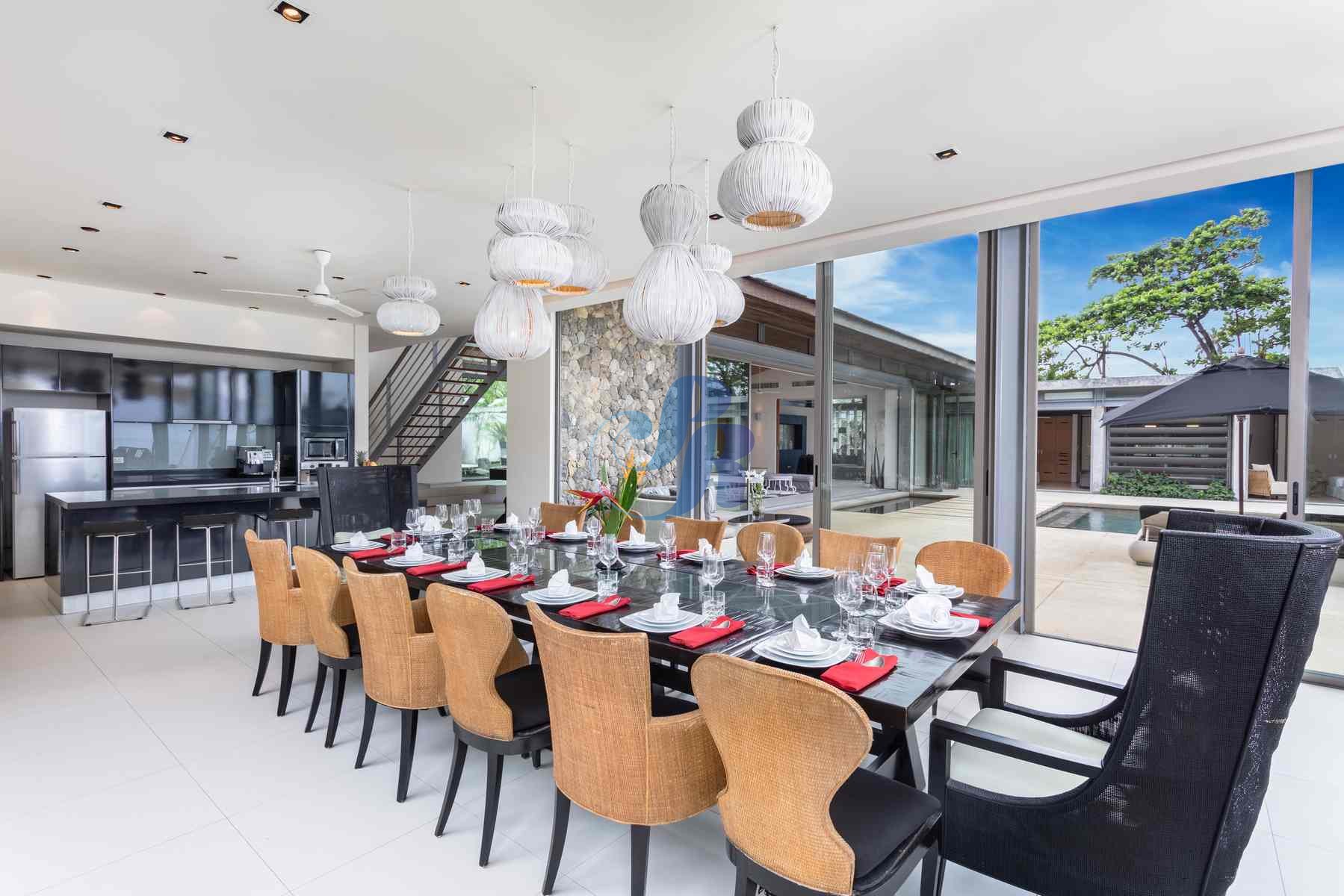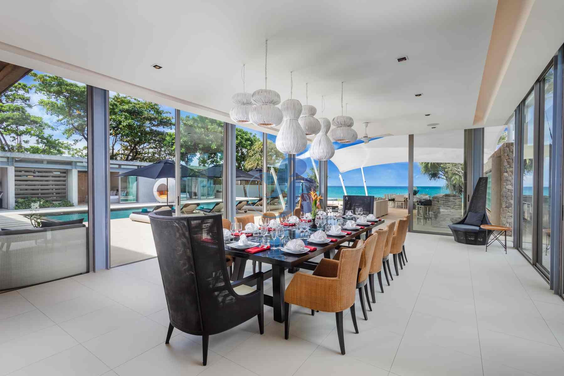A grand open-plan living area with panoramic ocean views forms the social heart of the villa. It flows seamlessly into: