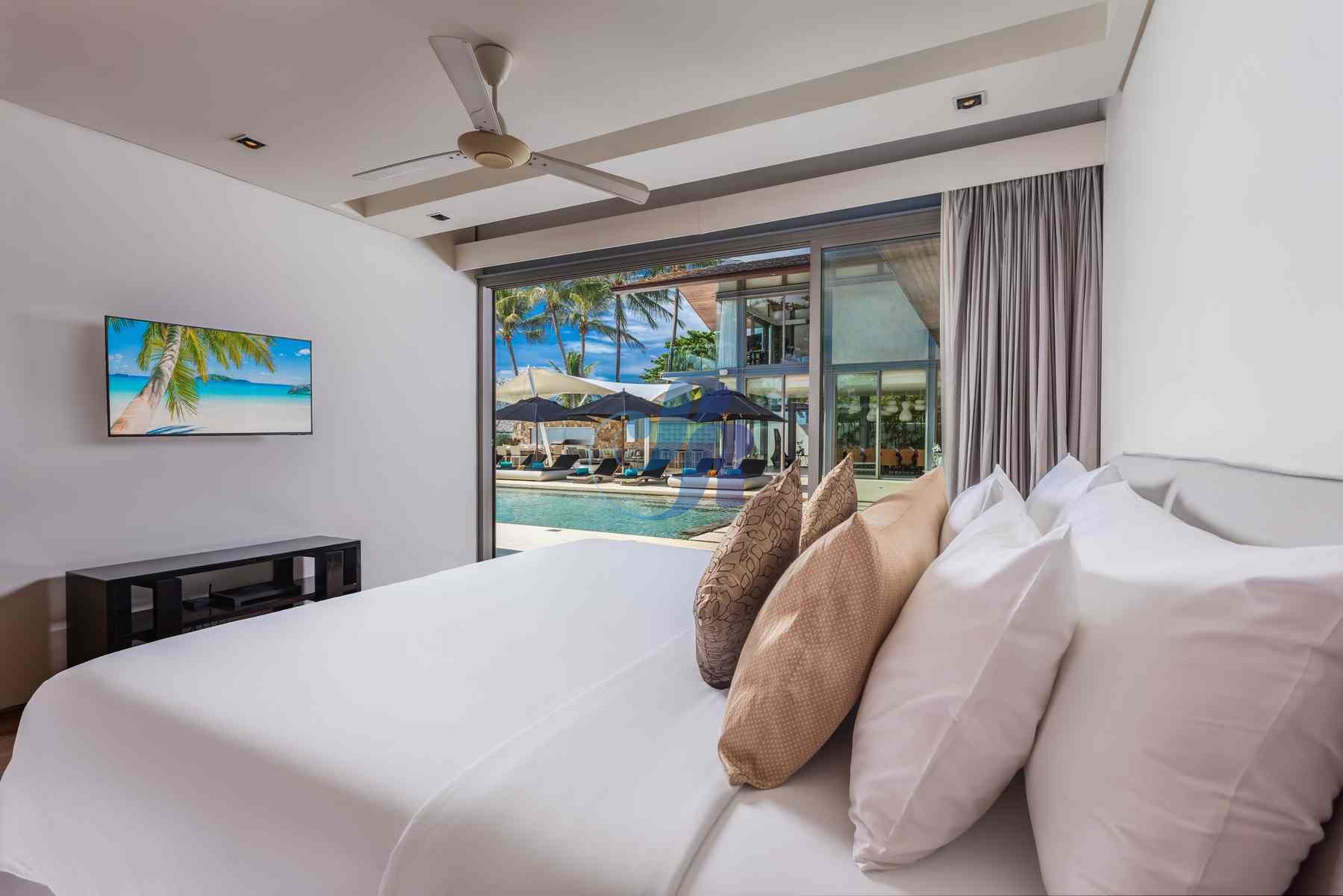 Each bedroom includes Smart TV, sound system, air conditioning, premium amenities, and thoughtfully designed living spaces. Selected rooms offer private balconies, walk-in closets, soaking tubs, and panoramic sea or pool views.