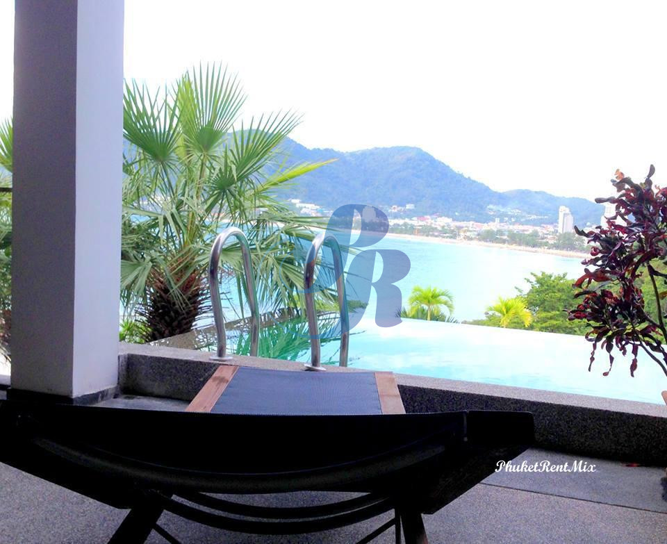 the area around the pool, porch with outdoor furniture. Beautiful views of Patong beach and the sea.
